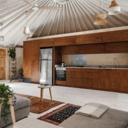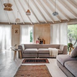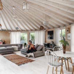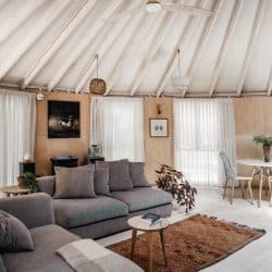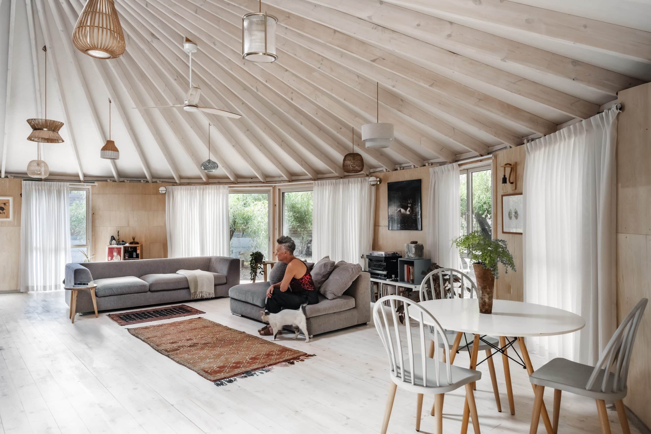יורט למגורים במרכז הארץ בקוטר 10 מטר עם חלוקה פנימית לשני חדרים – חדר שינה וחדר שירותים מקלחת